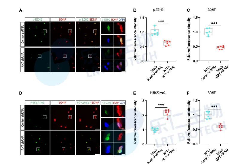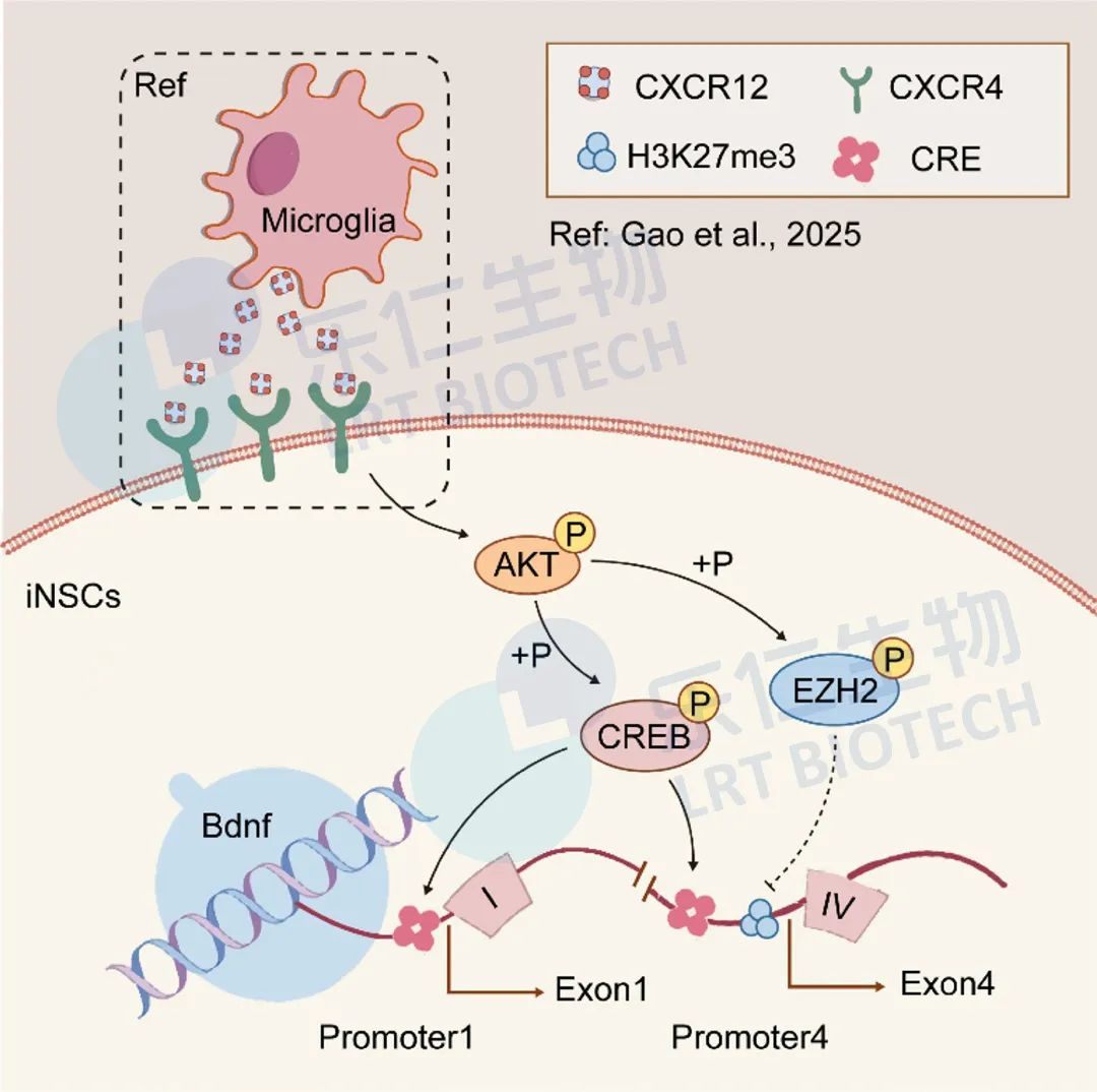 簡而言之,研究表明AKT信號傳導可能調節iNSCs中BDNF的表達。AKT的激活可通過滅活EZH2以及降低Bdnf啟動子IV處的EZH2和H3K27me3水平來上調BDNF表達,同時激活CREB以及增加Bdnf啟動子I和IV處的CREB水平
